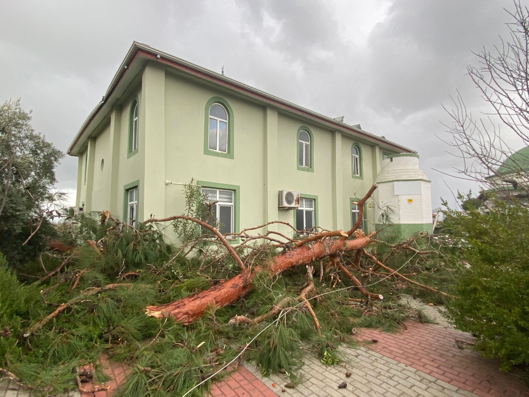 CAMİ MİNARESİ YIKILDI, AĞAÇLAR KÖKÜNDEN SÖKÜLDÜ