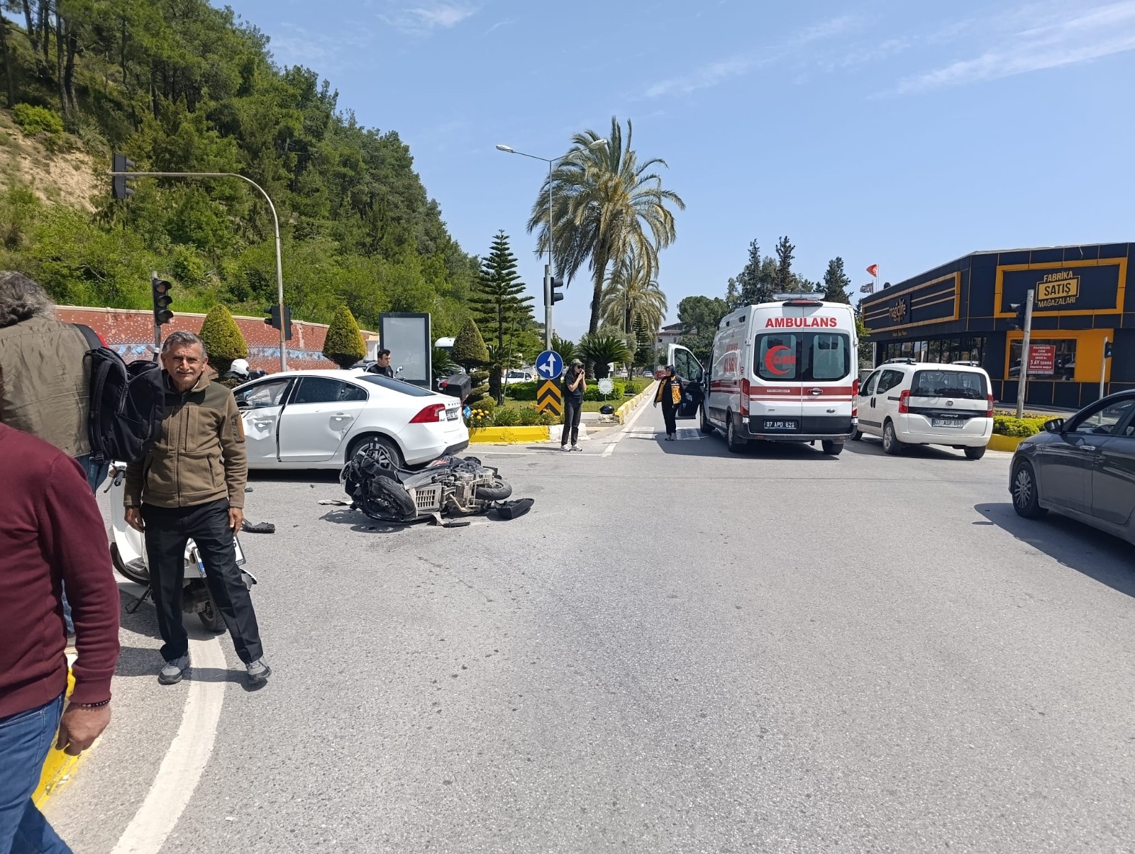 haberimizvar.net- Kaza; Manavgat ilçesi Antalya Caddesi ile Sorgun Bulvarı kavşağında meydana geldi. Edinilen bilgiye göre, Hasan Fehmi Boztepe Caddesi istikametinden Antalya Caddesi istikametine seyir halindeki Hüseyin S.'nin (17) kullandığı 07 CGB 960 plakalı motosiklet, kavşak sisteminde İrem B.'nin kullandığı 52 ADT 922 plakalı otomobil ile çarpıştı. Kazada motosiklet sürücüsü Hüseyin S. ve motosiklette yolcu olarak bulunan Ali M. Ş. (17) yaralandı. 112 sağlık ekiplerinin olay yerindeki müdahalesinin ardından yaralılar ambulansla hastaneye kaldırıldı.