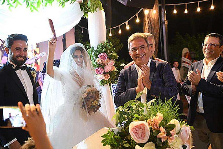 haberimizvar.net Konyaaltı Belediye Başkanı Avukat Semih Esen, manevi evladım dediği Hakan Toluk ile Aysu Özyürek’in nikahını kıydı. Anadolu Park’ta kır düğünüyle evlenen genç çiftin şahitliğini CHP Antalya Milletvekilleri Çetin Osman Budak, Rafet Zeybek ve Antalya İl Başkanı Ahmet Kumbul yaptı. Nikahın ardından Milletvekili Budak, evlilik cüzdanını Aysu Özyürek’e verince düğüne katılanlar alkış yağmuruna tuttu. Başkan Esen’in duygusal anlar yaşadığı düğün gecenin ilerleyen saatlerine kadar sürdü.
