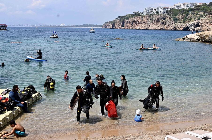 Dalış eğitmeni Ercüment Şen, "Çevre Temizlik İl Eylem Planı kapsamında Muratpaşa Belediyesi iş birliği ile tarihi Mermerli Plajı'mızda temizlik yaptık. Bu temizliğimiz, büyük bir organizasyon sonucu gerçekleşti" dedi.