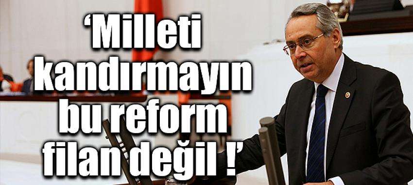 “Yine yargıda reform iddiasıyla getirilen bir teklifle karşı karşıyayız, görüşüyoruz ama bu ülkede AKP iktidarları döneminde getirilen her yargı reformu, maalesef yargıyı daha güçsüz, güvenilirliği daha az ve daha sorunlu hâle gelmiştir. Bu nedenle, bence eğer yargının bağımsızlığını, tarafsızlığını istiyorsanız gelin, böyle reformları yargı reformu ile düzenlemeyin, getirmeyin. AKP benzeri reformları 2009 yılında da yargıda reform yaparız iddiasıyla getirdi, yine bugünkü gibi o zaman da, her getirilen yargı reformu iddiasında aynen şu denildi; ‘Biz yargıyı bağımsız, tarafsız yapacağız.’ AKP 2010 yılında Anayasa değişikliği yapılırken ‘Yargıda reform yapıyoruz’ İddiasını kullandı, aynı şeyleri savundu, itiraz edenlere hiç hak vermedi ama yargının FETÖ'nün kontrolü altına girdiğini görünce, ‘Biz yanıldık, bu reform değilmiş’ dedi. FETÖ’ye teslim ettiğiniz yargıyı bu seferde 2017 yılında tekrar değiştirdiniz. Her getirilen yargı reformundan sonra yargı daha çok bağımlı hâle geldi, daha çok güçsüz hâle geldi, daha çok parçalandı. Bunun için Çoklu Baro teklifi gibi önerilere, AKP artık yargı reformu, bu, bir reformdur dememeli, bu milleti kandırmayın, bu, reform falan değildir.”