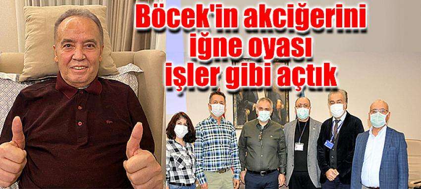 AÜ Hastanesi Anesteziyoloji ve Reanimasyon Anabilim Dalı Öğretim Üyesi Prof. Dr. Murat Yılmaz da Başkan Böcek'in kendilerine geldiği zaman akciğerinin çok kötü durumda olduğunu hatırlatarak, “Sağlam akciğer dokusu neredeyse bir bebek akciğeri kadar küçülmüştü. Biz iğne oyası işler gibi yavaş yavaş o akciğeri açtık. Sağlıklı bir akciğer haline getirdik. Yoğun bakımda günlerce çok zorlandık. Akciğerleri dinlendirmek için suni solunum cihazına bağladık. Ayrıca kanı bir cihazla vücudun dışına alarak oksijenlendirdik. Karbondioksitin atılımını sağladık. Başkanı bugünlere getirdik. Tabi çok zorlandık. Çok zorlu bir süreçti. Bu kadar uzun süre kalan başka hastalarımız da var. Ama başkanın akciğerleri gerçekten çok kötüydü" diye konuştu.