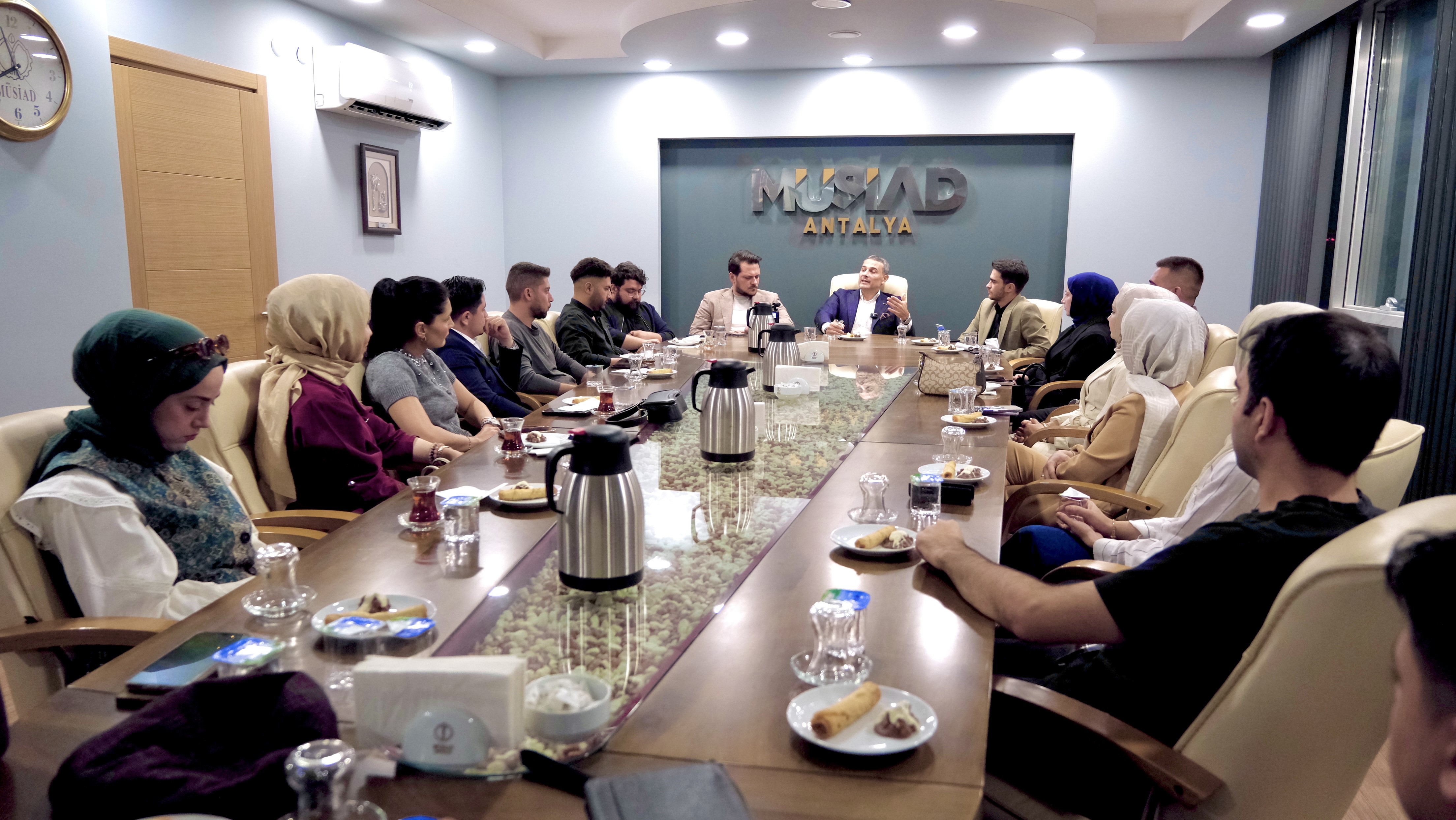 MÜSİAD Antalya Başkanı Yusuf Akgül, Genç MÜSİAD üyeleriyle buluşarak dış ticaret adımları, hedef pazar araştırmaları, küresel ticaretin işleyişi ve mevcut ekonomik şartlar hakkında tecrübelerini aktardı.