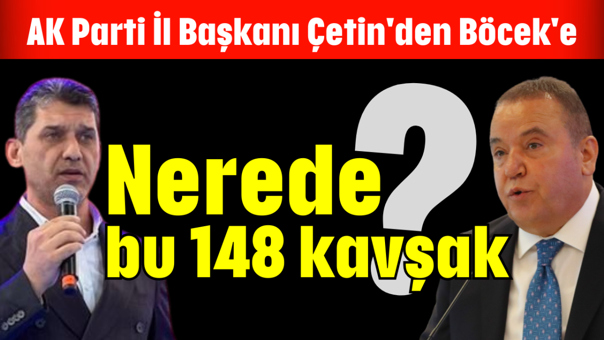 AK Parti Antalya İl Başkanı Ali Çetin, Antalya Büyükşehir Belediye Meclisi'nin mart ayı olağan toplantısında, "Ben 148 tane akıllı kavşak yaptım. Hükümet de üzerine düşeni yapmalı ve Alanya Otoyolu başta olmak üzere çevre yollarını bitirmeli" diyen Büyükşehir Belediye Başkanı Muhittin Böcek'e, "Nerede bu 148 kavşak?' sorusunu yöneltti.