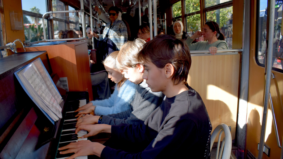 Antalya Büyükşehir Belediyesi'nin düzenlediği 24. Antalya Uluslararası Piyano Festivali kapsamında, İsmail Baha Sürelsan Konservatuvarı öğrencileri nostalji tramvayında konser verdi.