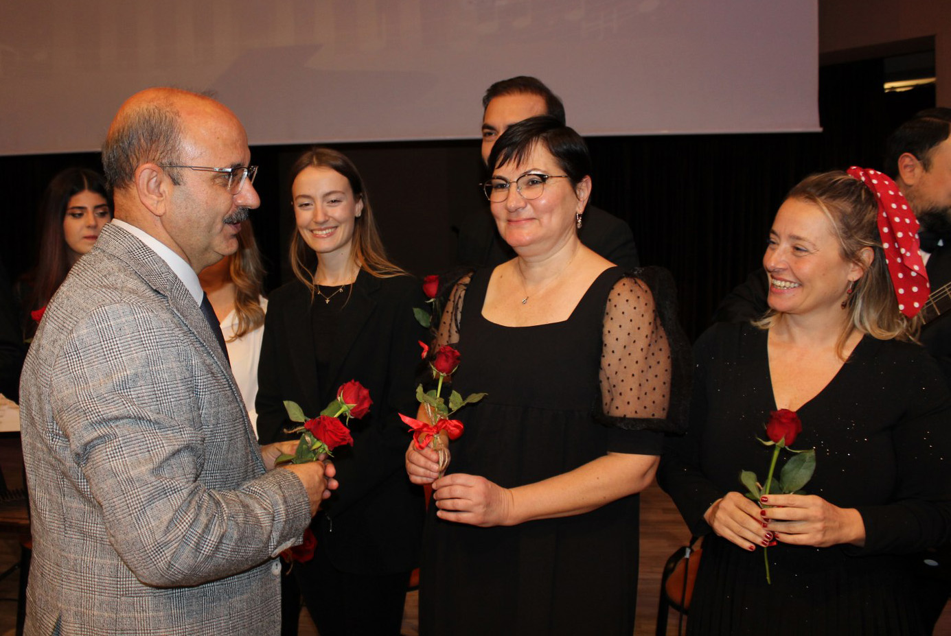 Programın açılış konuşmasını gerçekleştiren AÜ Antalya Devlet Konservatuvarı Müdürü Doç. Dr. Sevilay Gök, “Bugün geleceğimizi şekillendiren, en kıymetli mesleklerden birini icra eden öğretmenlerimizi onurlandırmak için bir aradayız. Öğretmenlik yalnızca bilgi aktarmak değil, düşünmeyi öğretmek, insanı inşa etmek ve toplumu geleceğe hazırlamaktır. Bu yönüyle öğretmenlik bir meslek olmanın ötesinde bir medeniyet sorumluluğudur. Başöğretmen Gazi Mustafa Kemal Atatürk'ün 'Yeni nesil sizin eseriniz olacaktır' sözü, öğretmenliğin tarihsel ve toplumsal derinliğini en çarpıcı şekilde ifade etmektedir.