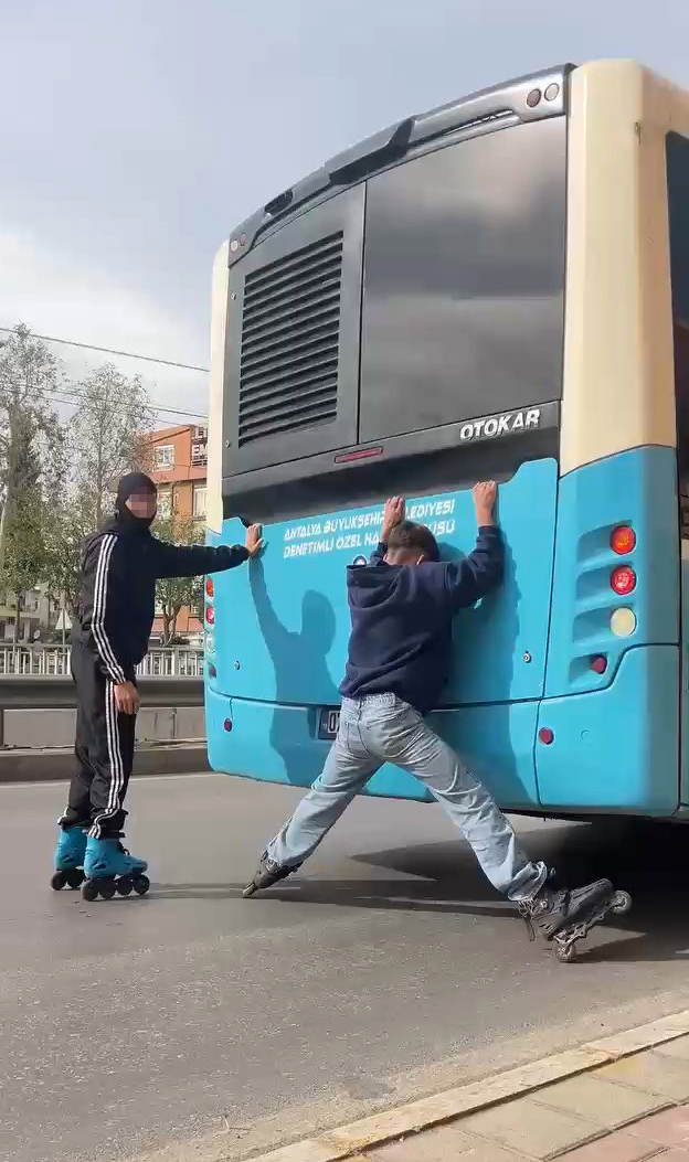 Antalya'da patenli çocukların seyir halindeki otobüslerin arkasına tutunarak trafikte ilerleme tehlikesine karşı bir şoförün aracın arkasına 'Patenci kardeş, tutma arkadan, anneni babanı ağlatma arkandan' yazısının yer aldığı LED tabela asması dikkati çekti.