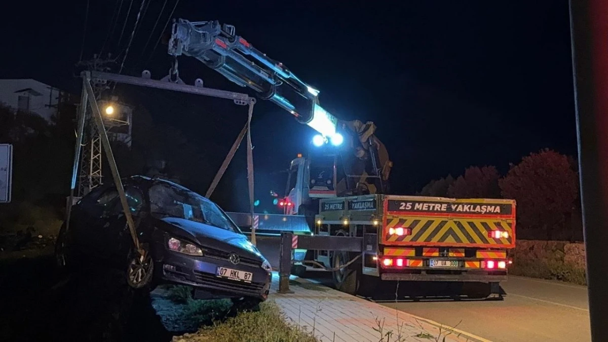 Antalya’nın Gazipaşa ilçesinde alkollü sürücünün kullandığı otomobil 7 metre yükseklikten düştü, sürücü kazayı burnu bile kanamadan atlattı.