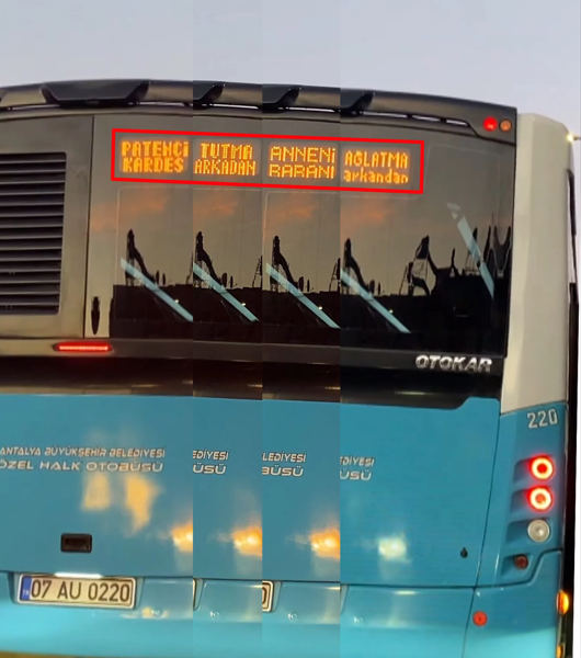 Antalya'da bir halk otobüs şoförü, toplu taşıma araçlarının arkasına tutunarak yolculuk yapan patenci çocukları uyarmak amacıyla aracın arka kısmına 'Patenci kardeş tutma arkadan, anneni babanı ağlatma arkandan' yazılı LED tabela astı. Yoğun trafikte hem kendi canlarını hem de sürücüleri tehlikeye atan çocukları uyaran otobüs şoförü Şener Kara, "Çocukların toplu taşımaya yapışmamasını dilerim. Ailelere tavsiyem çocuklarını uyarsınlar" dedi.