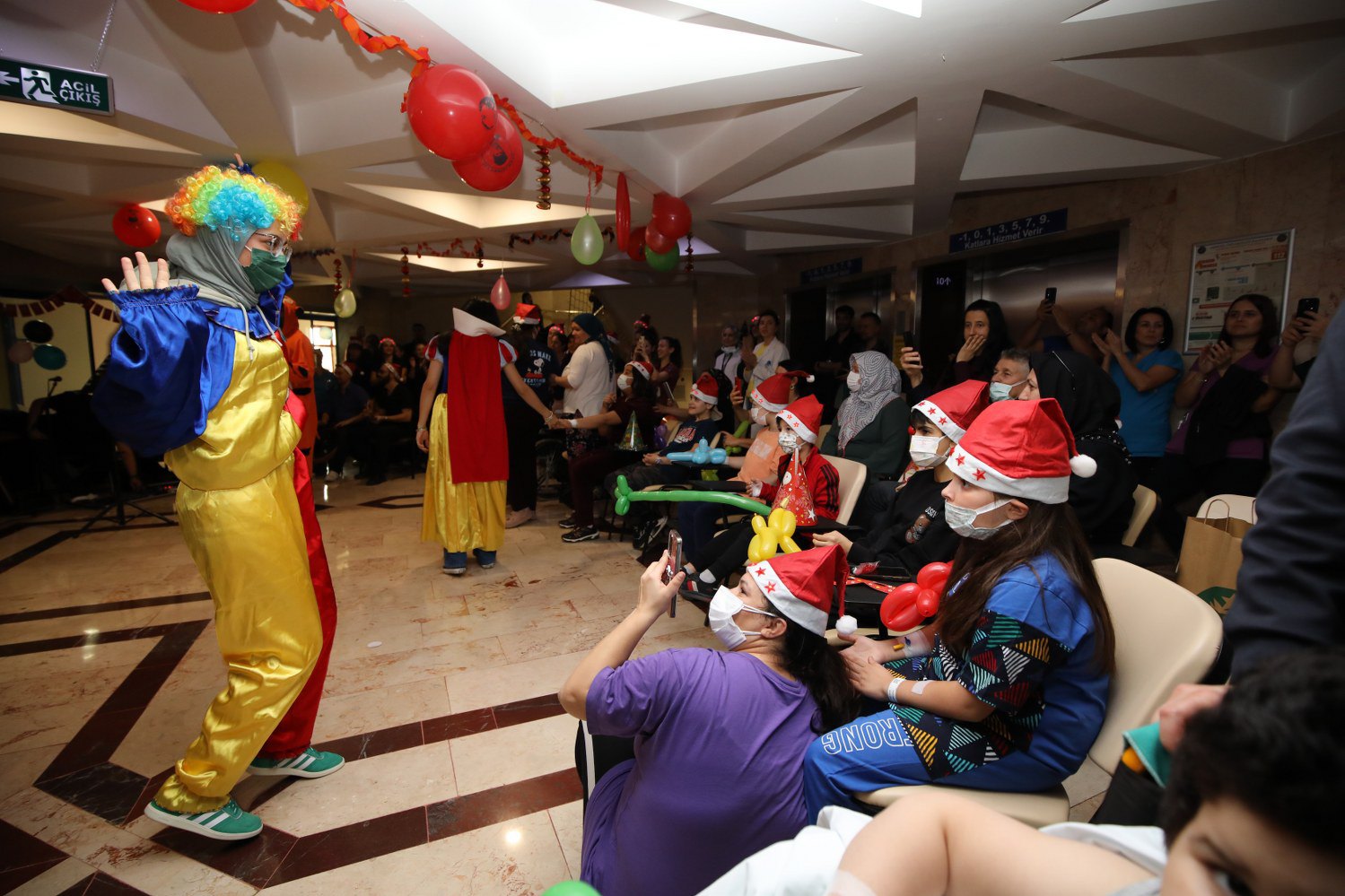 AÜ Hastanesi Çocuk Sağlığı ve Hastalıkları Anabilim Dalı tarafından çocuk hastalar için yeni yıl etkinliği düzenlendi. Etkinlikte hasta çocuklar, palyaço ve çizgi film kostümü giyenlerle birlikte mutlu zaman geçirdi. Çocuk Sağlığı ve Hastalıkları Polikliniğin ortak alanında gerçekleştirilen etkinliğe Rektör Özkan, Rektör Yardımcısı Prof. Dr. Ayşe Gülbin Arıcı, AÜ Hastanesi Başhekimi Prof. Dr. Yıldıray Çete, başhekim yardımcıları, Çocuk Sağlığı ve Hastalıkları Anabilim Dalı Başkanı Prof. Dr. Oğuz Dursun, hekimler ve çocuk hastalar ile aileleri katıldı.