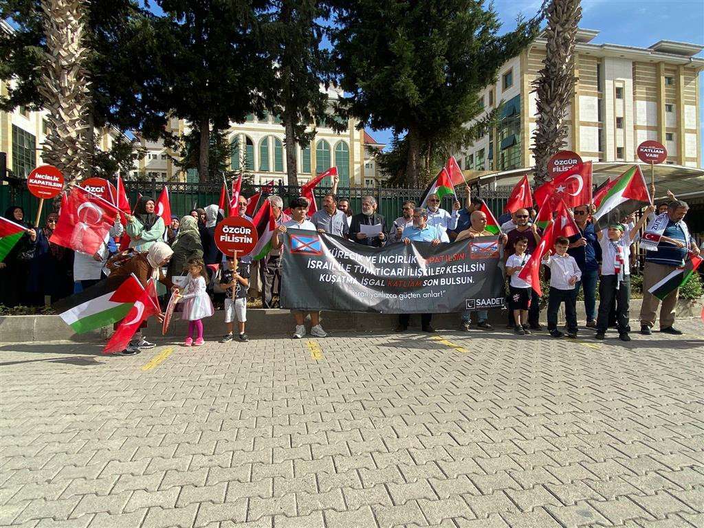 Antalya Saadet Partisi İl Başkanlığı ve İl Kadın Kolları Başkanlığı’nca düzenlenen Antalya Adalet Sarayı önünde İsrail’in Savaş suçlusu sayılması için İsrail Yöneticilerine Antalya Cumhuriyet Savcılığı’na suç duyurusu ve basın açıklaması düzenleniyor.