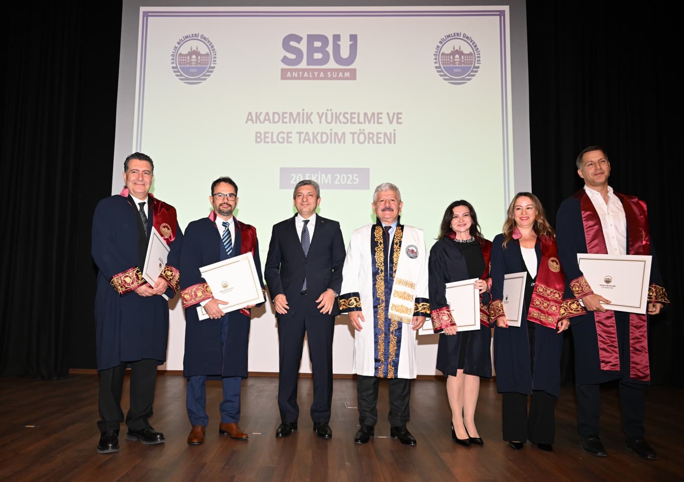 Açılış konuşmalarının ardından Vali Hulusi Şahin, görevde yükselme başarısı gösteren akademisyenlere cübbelerini giydirerek belgelerini takdim etti. Ayrıca, akademik başarıları ve özverili çalışmalarıyla sağlık hizmetlerine katkı sunan personele teşekkür belgeleri verildi.