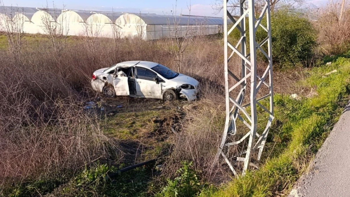 Antalya'nın Serik ilçesinde otomobiliyle elektrik direğine çarpıp tarlaya savrulan sürücü F.K., ile beraberindeki 3 kişi yaralandı.