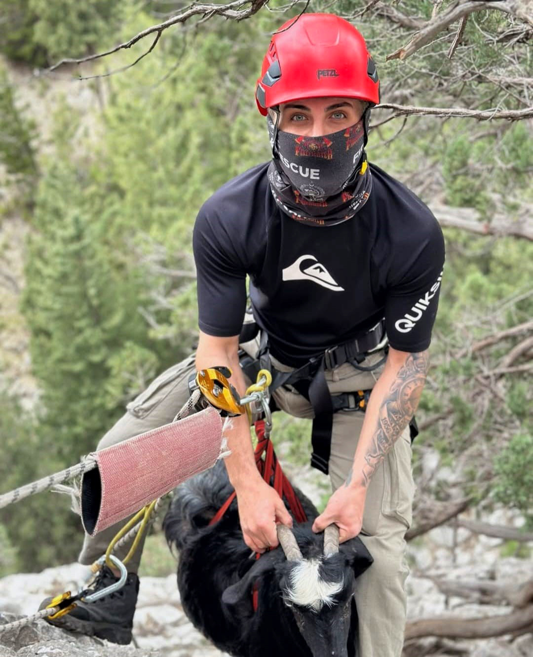 haberimizvar.net- Serik'e bağlı Yumaklar Mahallesi'nde yayılan hayvanlarından keçi ve kuzusunun olmadığını fark eden sürü sahibi çevrede aramaya başladı. Keçi ve kuzusunun sarp kayalık bölgede mahsur kaldığını gören sürü sahibi 112 Acil Çağrı Merkezi'ni arayıp durumu bildirdi. Bunun üzerine olay yerine itfaiye kurtarma ekipleri sevk edildi. Yaklaşık 60 metre sarp kayalık alanda mahsur kalan keçi ve kuzu yapılan operasyonla kurtarılarak sahibine teslim edildi.