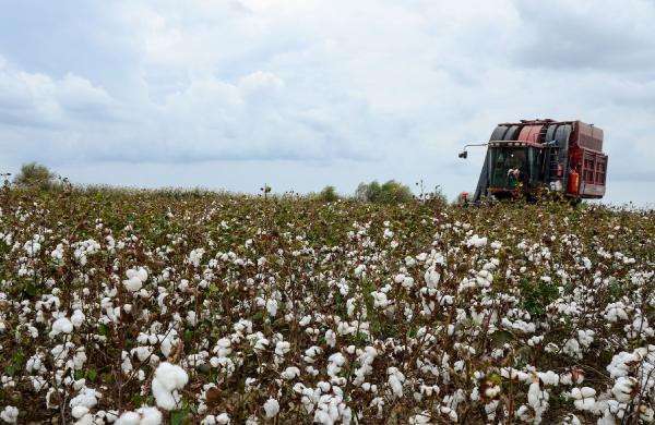 İlçe Tarım ve Orman Müdürlüğü ekipleri hasat yapılan arazilerde ürün kaybını önlemek için hasat makinasını kontrol ediyor. Tarladaki pamuktan örnekler alan ekipler, hasat sırasında makine tarafından tarlada kalan pamuğun yüzde 5'i geçmemesi için üreticilere bilgi veriyor.