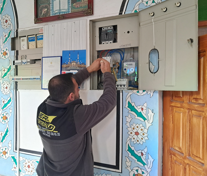 haberimizvar.net- Önceki gece etkili olan fırtına ve yoğun yağışın ardından şimşek çakması sonucu Merkez Mahallesi'ndeki Tuzcoğlu Camisi'nin avlusunda abdest alınan bölümü ve elektrik aksamı arızalandı. Camide oluşan elektrik arızasını tadilata gelen Ali Yağmur, "İlçemizde çıkan fırtınaya bağlı şişmek çakması sonucu caminin grup sigortasını yanmış. Dışarıda ve içeride prizlere zarar vermiş. Onun tadilatı için geldik" dedi.