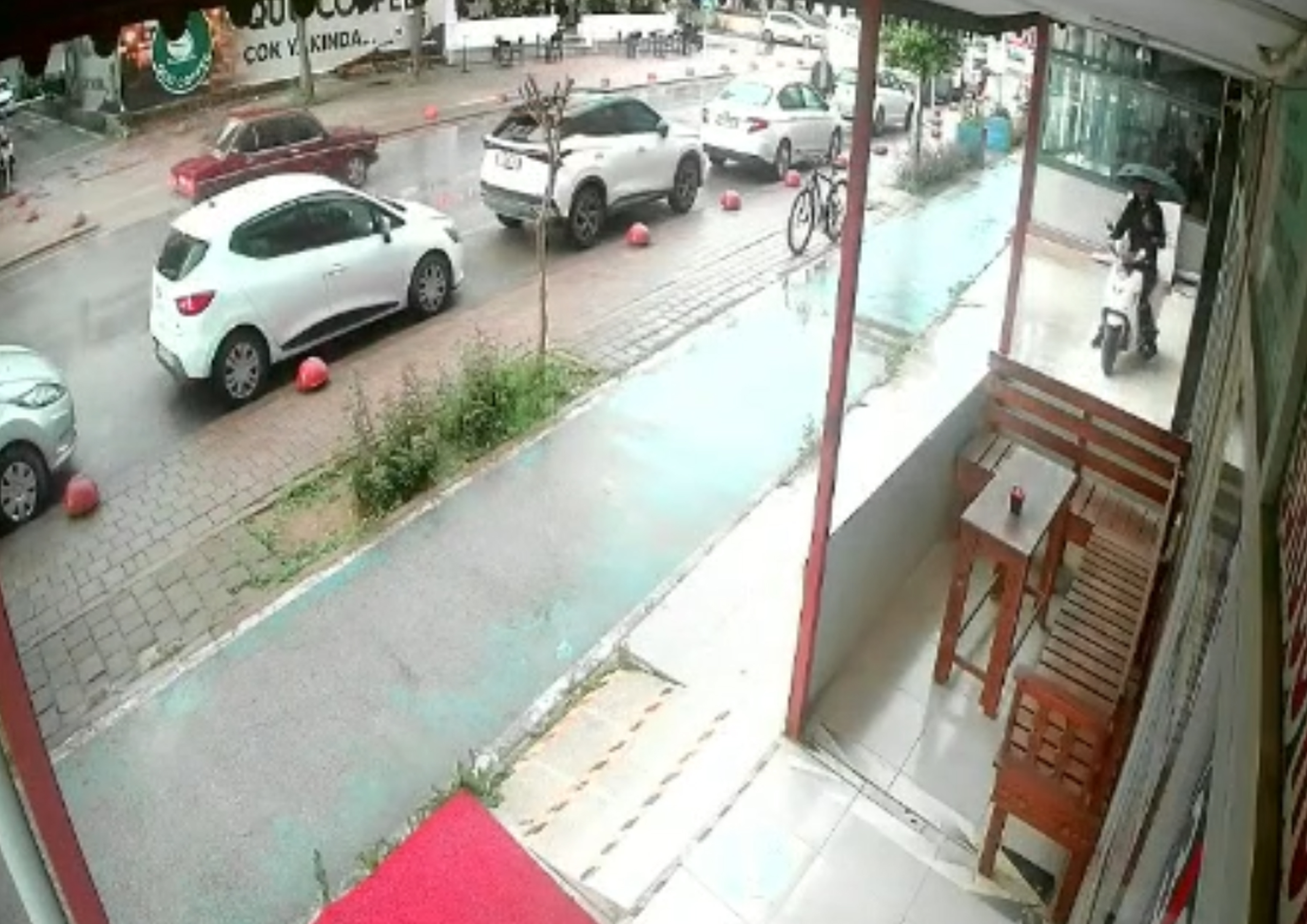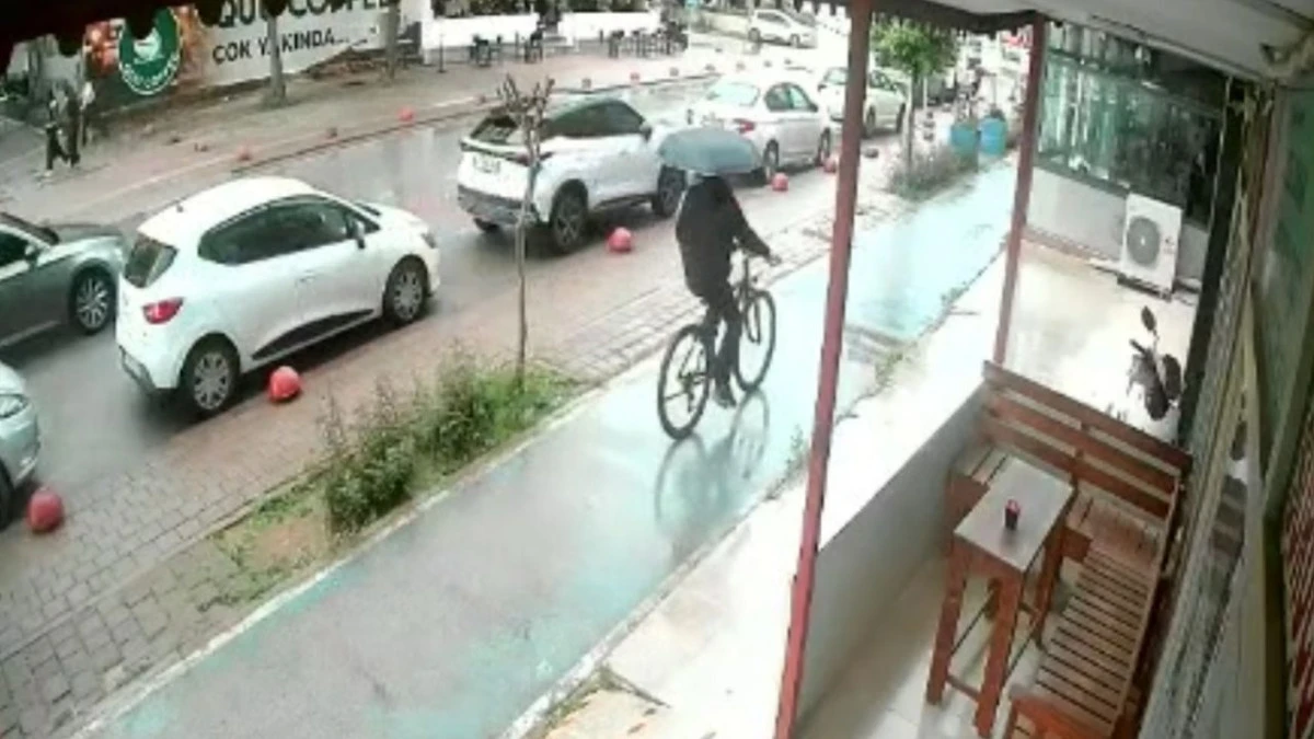 Hırsızlık anı güvenlik kamerasına yansıdı. Görüntüde bisikletle ilerleyen şüphelinin park halindeki motosikleti fark ettikten sonra birkaç metre ileriden geri döndüğü, bisikleti bırakıp çalıştırdığı motosikletle olay yerinden uzaklaştığı anlar yer aldı.
