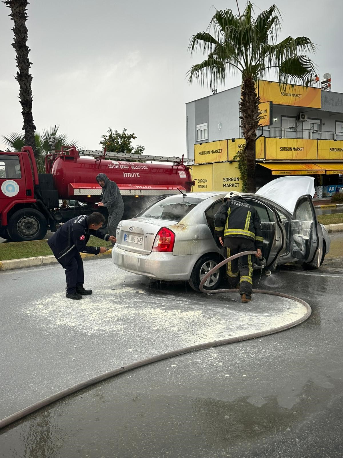 haberimizvar.net- Olay, Manavgat ilçesi Sorgun Bulvarı'nda meydana geldi. Edinilen bilgiye göre, H.K., 01 ADG 145 plakalı Hyundaı otomobiline Sorgun Mahallesi Acısu Caddesi üzerinde bulunan akaryakıt istasyonundan yakıt aldıktan sonra, Sorgun Bulvarı'nda otogar istikametine seyir halindeyken otomobil bir anda yanmaya başladı. Araç sürücüsü kendisini araçtan dışarı atarken, yangına ilk müdahaleyi yol kenarında bulunan marketçiler tarafından yangın tüpüyle yapıldı.