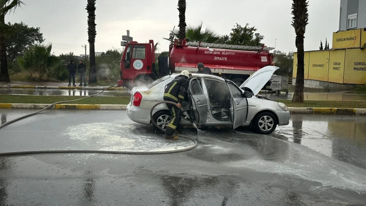 Antalya'nın Manavgat ilçesinde seyir halindeyken yanmaya başlayan otomobilin sürücüsü yaralanırken, yangın itfaiye ekipleri tarafından söndürüldü.
