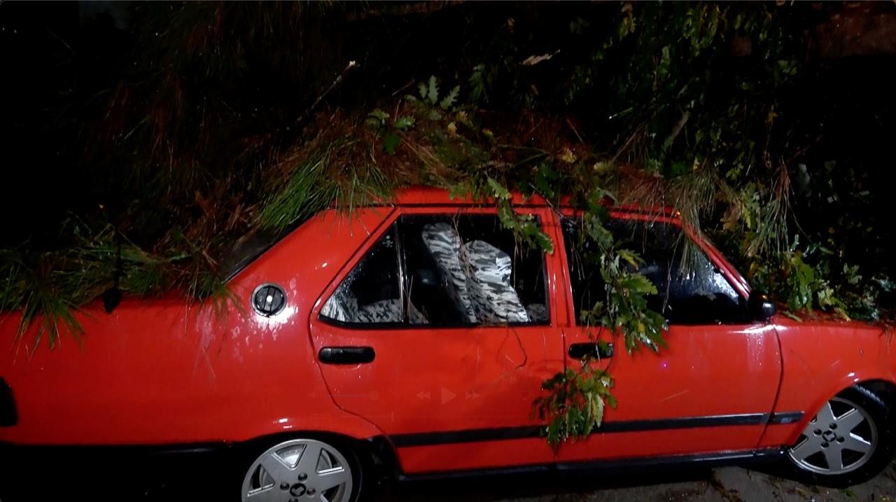 Sarı alarm verilen Antalya'da etkili olan yağış ve şiddetli rüzgar daha önce şikayet edildiği iddia edilen ağacın devrilmesine yol açtı. Olayda iki araç ve bir binada hasar oluşurken şans eseri kimse yaralanmadı.