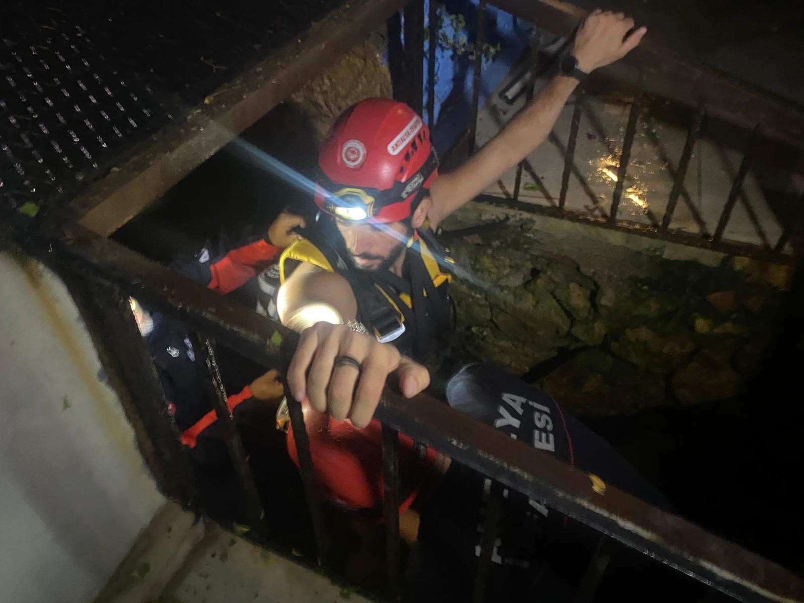 RERTORANIN BAHÇESİNDEKİ MERDİVENLİ GEÇİTTEN KURTARILDI