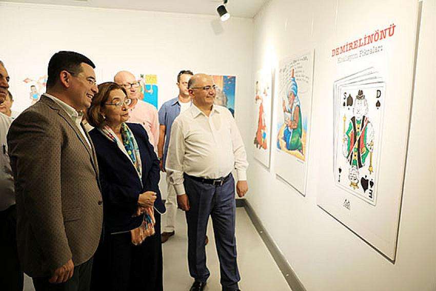 Antalya'da, 9'uncu Cumhurbaşkanı Süleyman Demirel'in 34 karikatürünün yer aldığı sergi açıldı