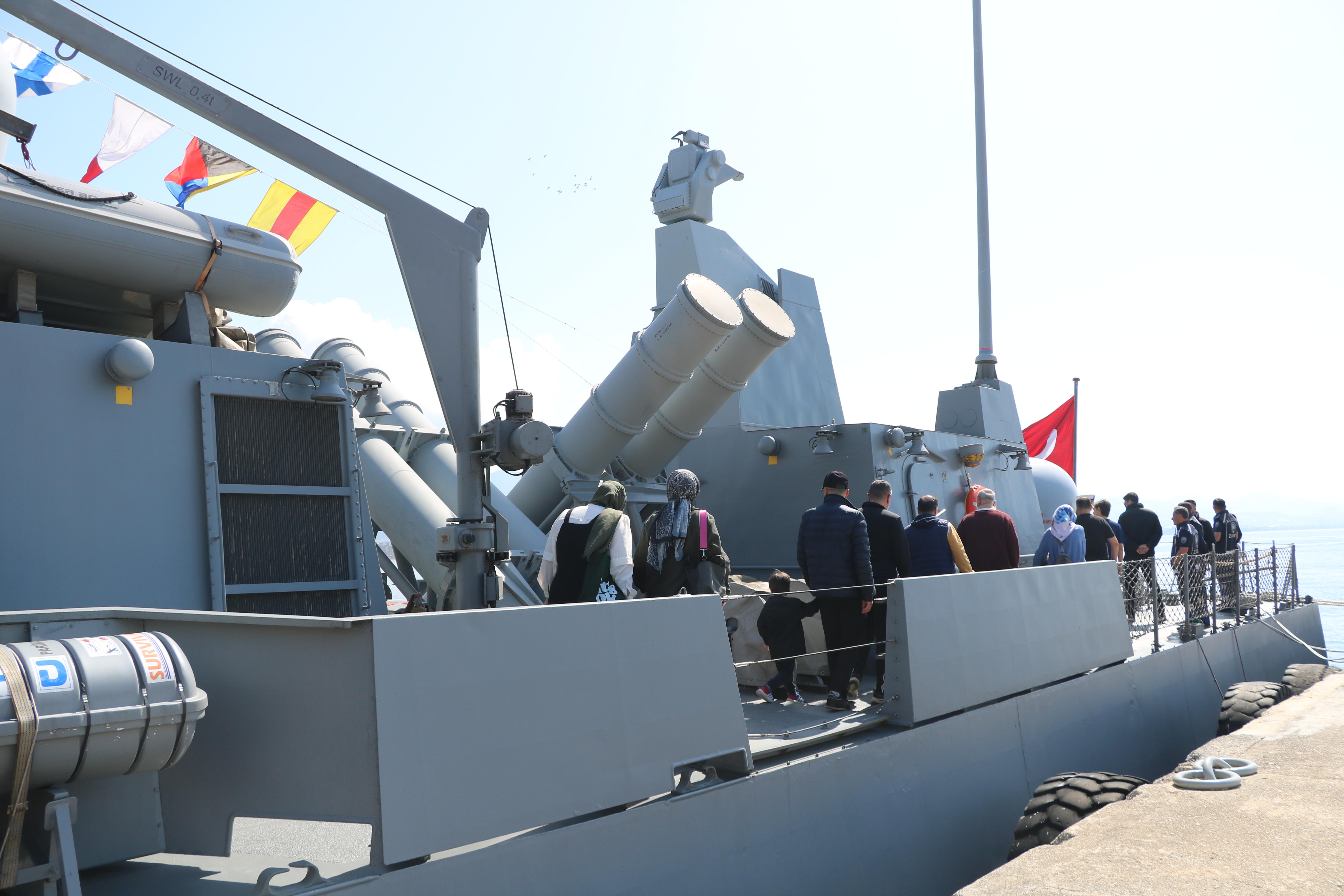 Türk Deniz Kuvvetleri'ne ait, yaklaşık 62 metre boyunda ve 9 metre enindeki Kılıç sınıfı hücumbotlardan TCG BORA (P-338), 23 Nisan Ulusal Egemenlik ve Çocuk Bayramı kapsamında Antalya'nın Alanya ilçesinde ziyarete açıldı. Aileler ve çocuklar, savaş gemisini yakından inceleme fırsatı buldu.
