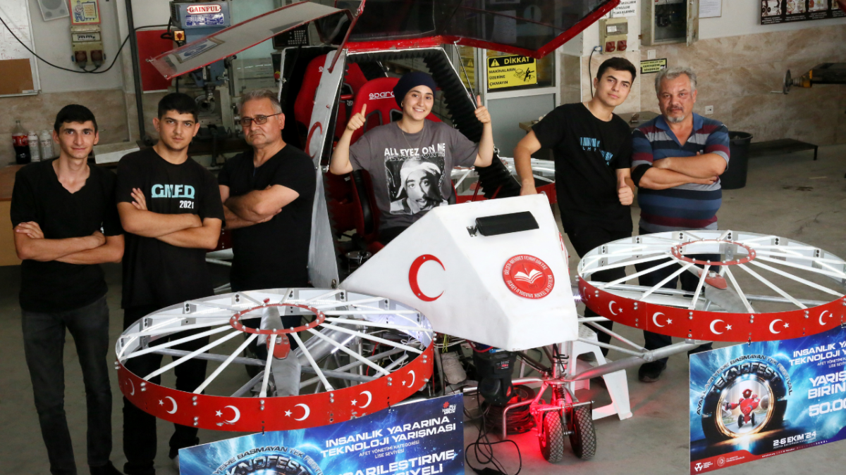 haberimizvar.net- Antalya Gülşen-Mehmet Fehmi Diktaş Mesleki ve Teknik Anadolu Lisesi Makine ve Tasarım Teknolojisi Alanı öğrencilerinden, 'Makinecanlar007' takımı okul atölyesinde hazırladıkları 'Fehmican' isimli insanlı ilk yardım dronu ile TEKNOFEST'e katıldı. Kara araçlarının ulaşamayacağı dağlık, kayalık bölgelerde ya da afet bölgelerinde mahsur kalan kazazedelerin konum tespiti, arama kurtarma çalışmalarına yardım, kazazedeye yardım ulaşıncaya kadar geçen sürede su, yiyecek, giyecek ve barınma malzemeleri ulaştırma ve kurtarmaya yönelik 2 kişilik cankurtaran binek dron projesi, TEKNOFEST İnsanlık Yararına Teknoloji Yarışması’nda, Afet Yönetimi Kategorisi ve lise seviyesinde Türkiye birincisi oldu. Binlerce rakip projeyi geride bırakarak Türkiye birinciliği kazanan insanlı ilk yardım dronu, Ticarileştirme Potansiyeli Ödülü de kazandı.