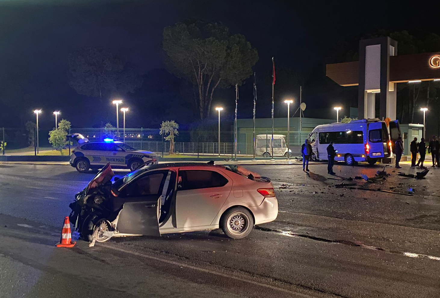 Antalya'nın Serik ilçesinde tur minibüsü ile çarpışan otomobildeki sürücü Ahmet G. ile Sevcan Özcan yaralandı.
