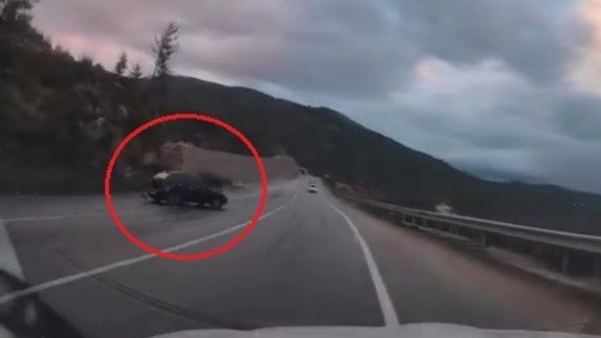 Antalya'nın Manavgat ilçesinde bir otomobilin kayganlaşan yolda akan trafikte virajı alamayarak kontrolden çıktığı anlar araç içi kamerasına yansıdı. Olay anında karşı şeritten her hangi bir aracın gelmemesi oluşabilecek bir kazayı engelledi.