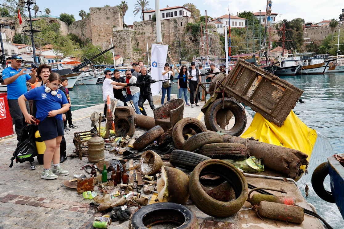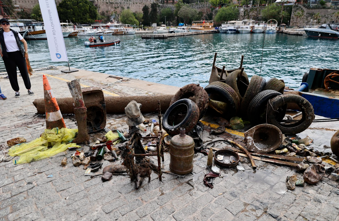 Antalya Büyükşehir Belediyesi, yaz aylarına sayılı günler kala deniz temizliğinde farkındalık oluşturmak amacıyla Sivil Toplum Kuruluşları ve gönüllü dalgıçlarla Kaleiçi Yat Limanı’nda deniz dip temizliği yaptı. Bir saatlik dalışta denizden çıkan çöpler görenleri şaşkına çevirdi. Yaklaşık 5 ton çöp çıkartılırken, denizin dibinden araç lastiği, demir parçaları ve teneke şişelere kadar birçok çöp atığı çıktı.