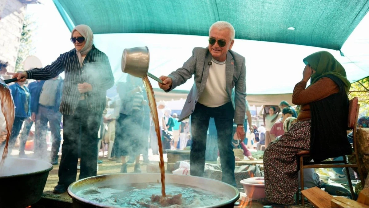 Önceki dönem Kültür ve Turizm Bakanı Ertuğrul Günay, İlçe Kaymakamı Musa Kazım Çelik, protokol üyeleri ve çiftçilerle birlikte üzüm bağlarında bağ bozumu şenliğine katılıp üzüm toplayan Başkan Mustafa Geyikçi, eşi Kadriye Hanım ile birlikte kazanın başına geçerek pekmez kaynattı, Yazır üzümü ile yapılan pekmezin inceliklerinden bahsetti.