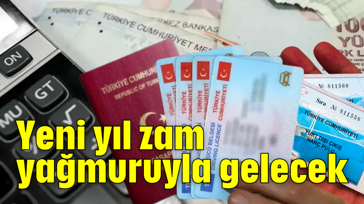 haberimizvar.net- 2025 yılı zamlarla birlikte gelecek. Milyonları olumsuz etkileyecek olan 'yeniden değerlendirme oranı' Cumhurbaşkanı Recep Tayyip Erdoğan'ın imzasıyla Resmi Gazete'de yayımlandı. Yeni oranla birlikte başta ehliyet, pasaport, kimlik, telefon harcı, motorlu taşıtlar vergisi ve trafik cezaları olmak üzere bir çok kaleme yüzde 43.93 oranında zam gelecek. 1 Ocak 2025'ten itibaren geçerli olarak yeni fiyatların bazıları şöyle: Seyir halinde cep telefonu kullanmak, kırmızı ışık ihlali yapmak ve araç muayenesi yaptırmamak: 2 bin 168 lira. Ruhsatsız araç kullanmak: 9 bin 267 lira, ehliyet kemeri takmamak, park yasağını ihlal etmek: 993 lira. Engelli otoparkını işgal: 1.986 lira. Kış lastiği takmamak: 9 bin 267 lira. Yurt dışı çıkış harcı 1 Ocak 2025'ten itibaren 719.65 liraya yükselecek. Yurt dışından yolcu ile beraber getirilen telefonlardan harç harici alınacak ücret 45 bin 614 lira olacak. Yeni yılda ehliye harcı 5 bin 678 liraya, 6 aya kadar olan pasaport harcı 2 bin 359 liraya, 1 yıllık pasaport harcı 3 bin 448 liraya, 2 yıllık pasaport harcı 5 bin 631 liraya, 3 yıllık pasaport harcı 8 bin liraya, 3 yıldan fazla pasaport harcı 11 bin 274 liraya yükselecek.