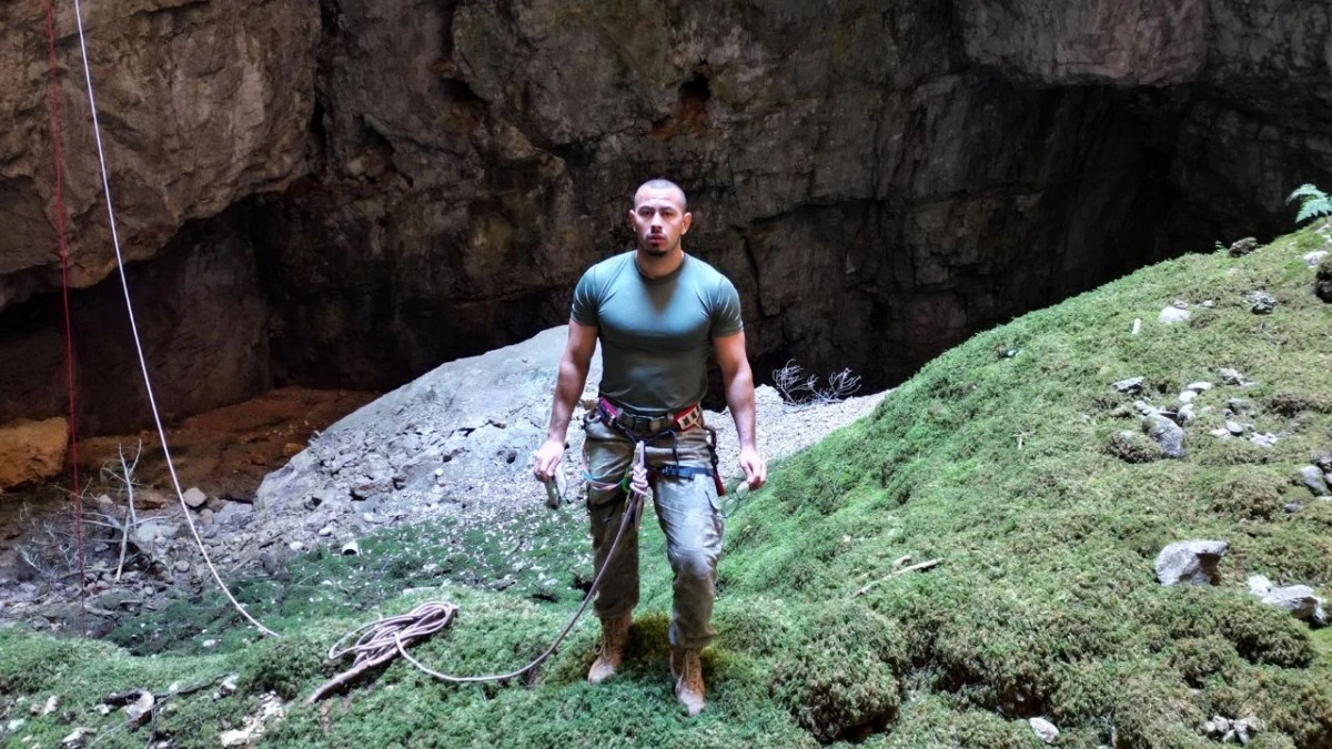 Antalya'da sosyal medya fenomeni Ozan Kuşçu (25), Burdur'da derinliği yaklaşık 90 metre olan obruğa indi. Zaman zaman büyük korku yaşayan Kuşçu, iniş ve çıkış anını kamera ve dron ile kaydetti.