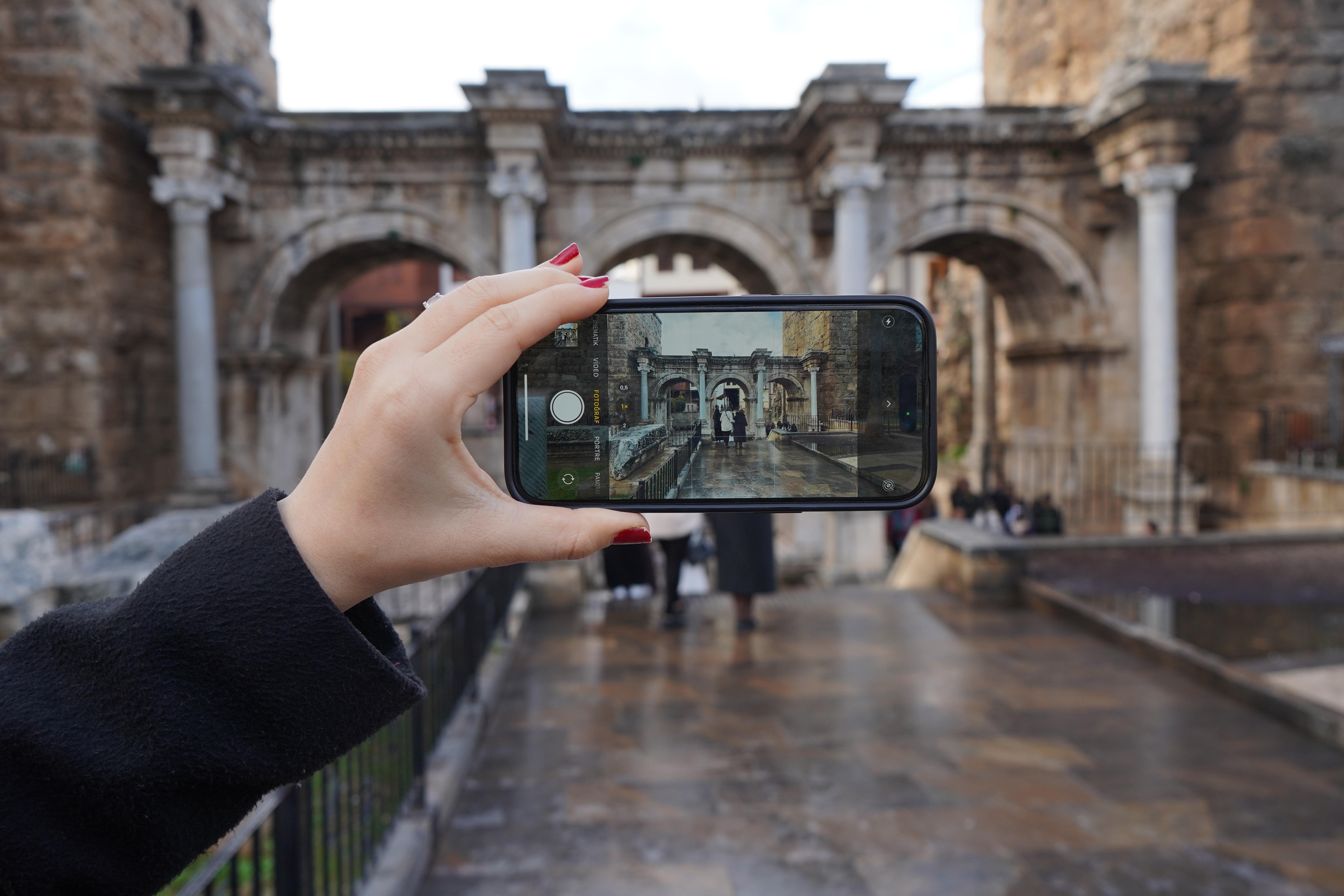 Yılın son gününü Antalya'da geçirmek isteyen turistler, Hadrian Kapısı önünde fotoğraf çektirdi. Kaleiçi sokaklarında yürüyüş yapan ziyaretçiler, tarihi dokunun tadını çıkardı.